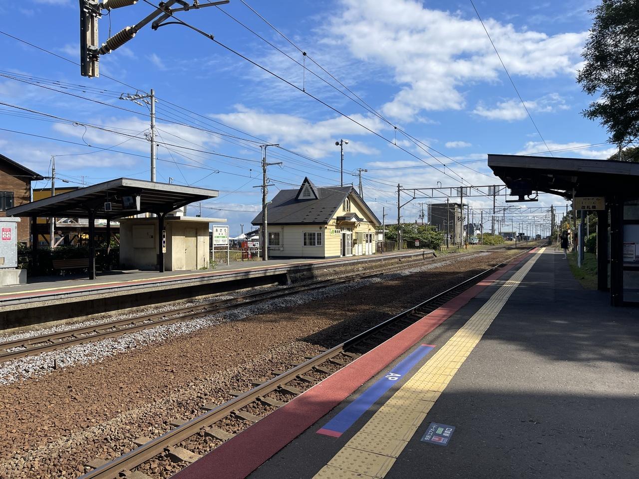 対岸へは跨線橋で渡れるけど、こちらのホームからも外へ出られる。