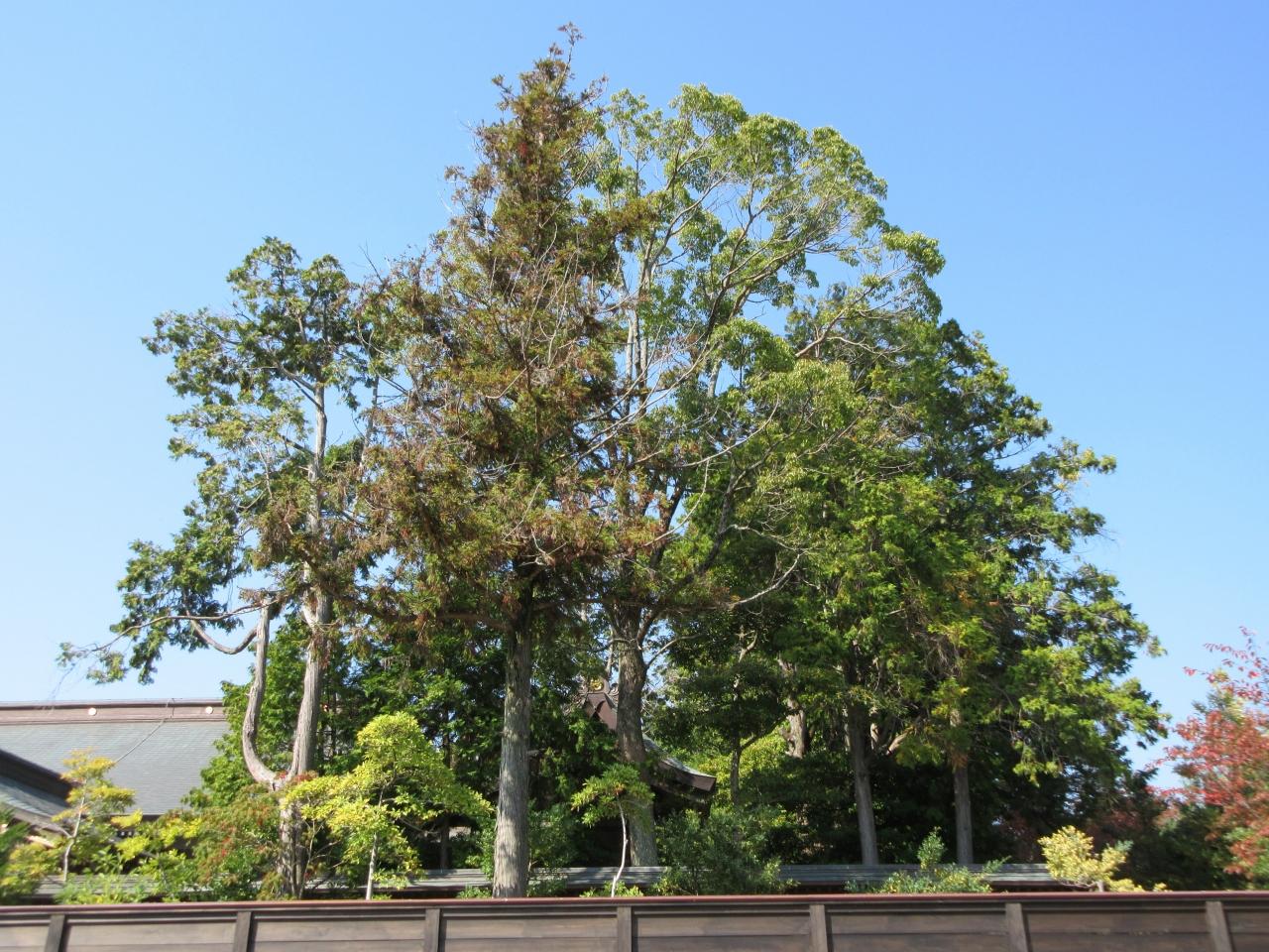 神社の後ろの木々