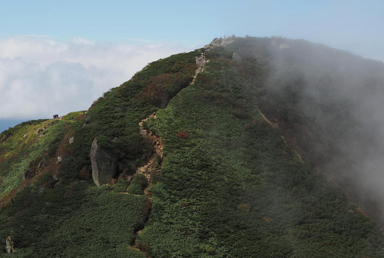 10時10分、手前のピーク、爼嵓(2346m)に到着・・・マナイタグラって読むんだで、試験には出ないだろうなぁ。