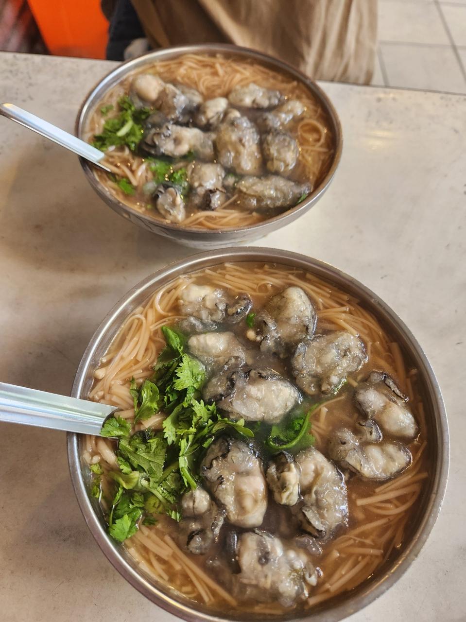 まずは牡蠣の麺線!とっても美味しい!ツルツルと入ります。