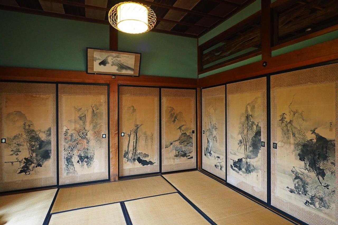 仏間の隣室の襖絵も美しい。 -