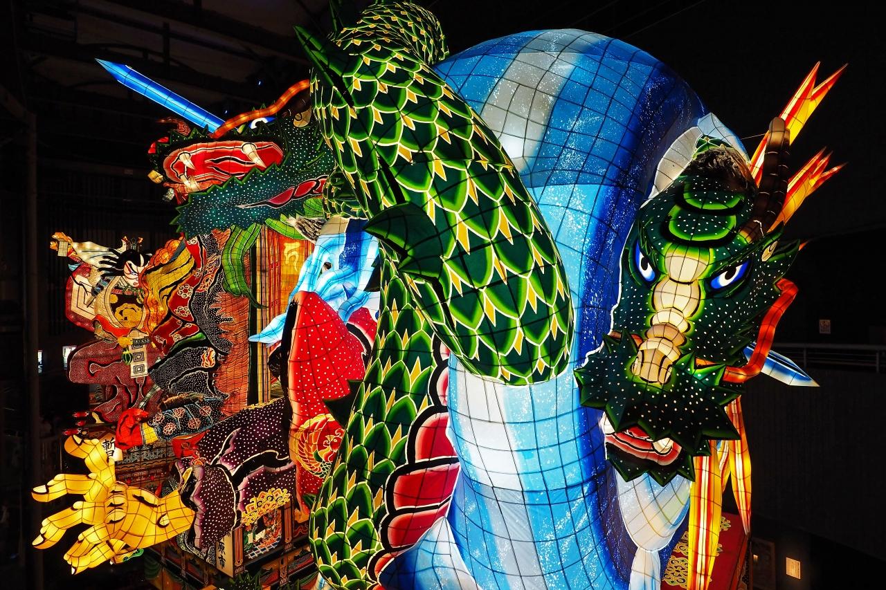 五所川原佞武多が縦に長いのに比べ、青森ねぶたは横に大きいのが特徴で、モチーフの見せ方がかなり異なる。