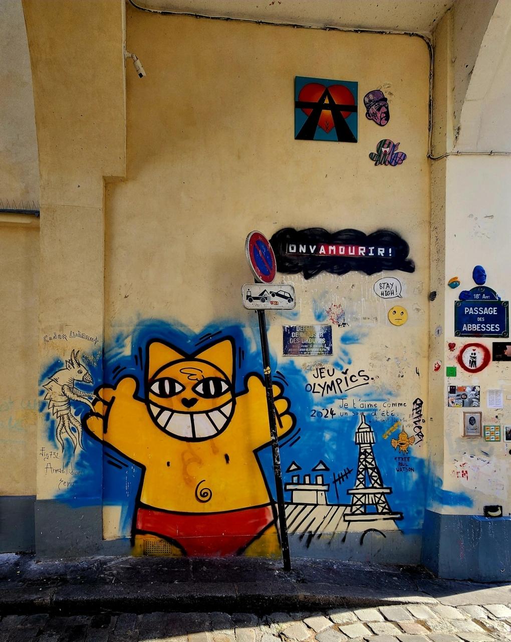 ズームするとワイヤーにぶら下がった靴です。調べてみたらモンマルトルの都市伝説で〔シューフィティ〕と云うそうです。モンマルトルだけでなくアメリカ・メキシコ・イギリス等々、様々な国で見られ意味合いもHAPPY~Darkまで色々みたいです。