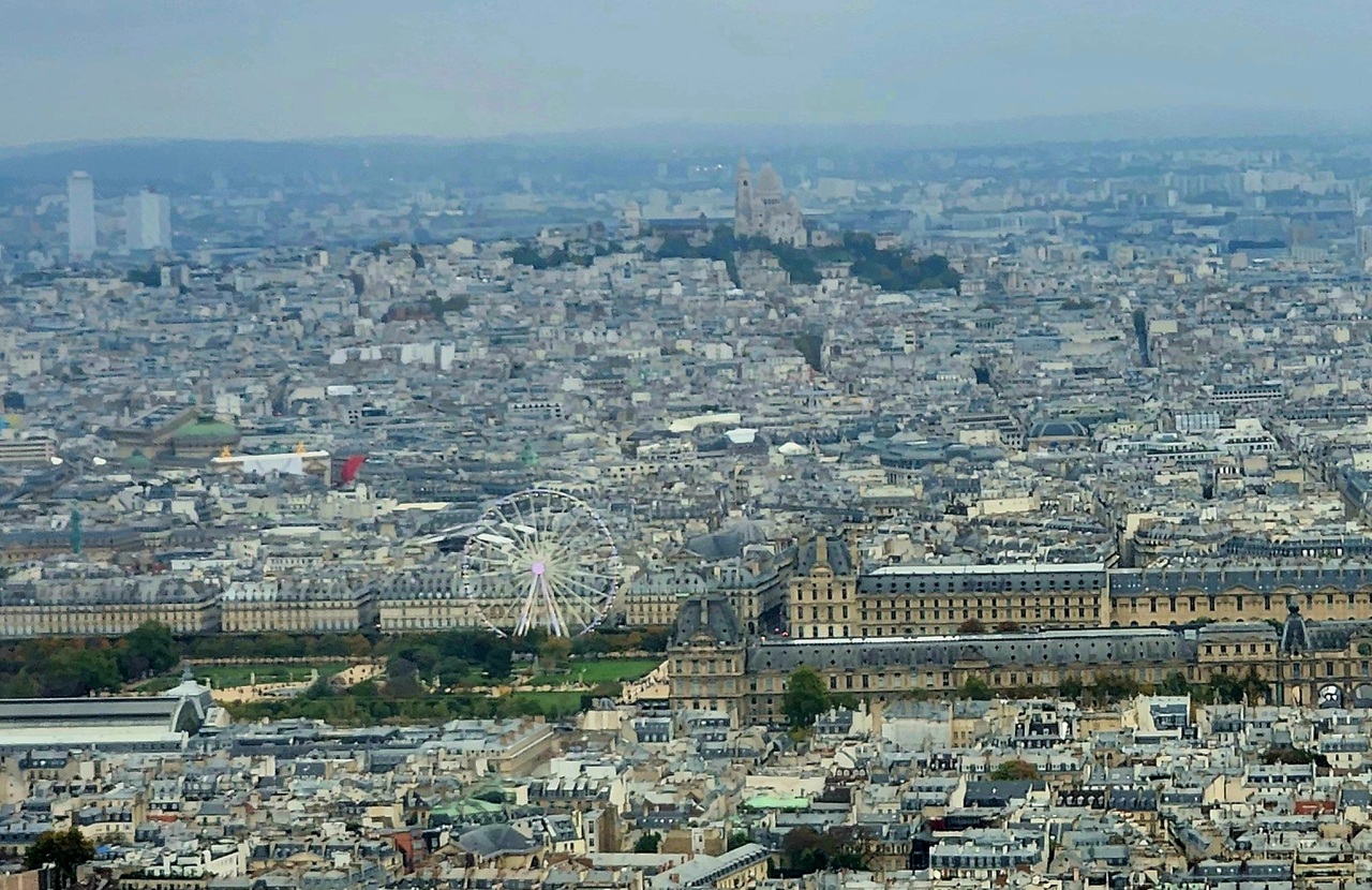 『ルーブル美術館』『チュイルリー公園』の奥に白い布がかかっている『オペラ・ガルニエ』遠くの丘に『サクレクール寺院』が見えます。