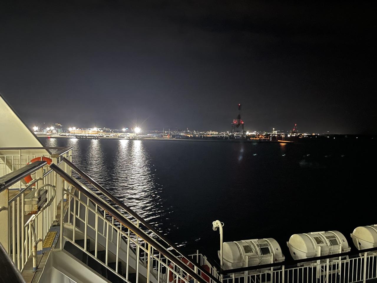 浮かれてこんな写真を撮ってたらもう出航していました…デッキへ行ってきます。