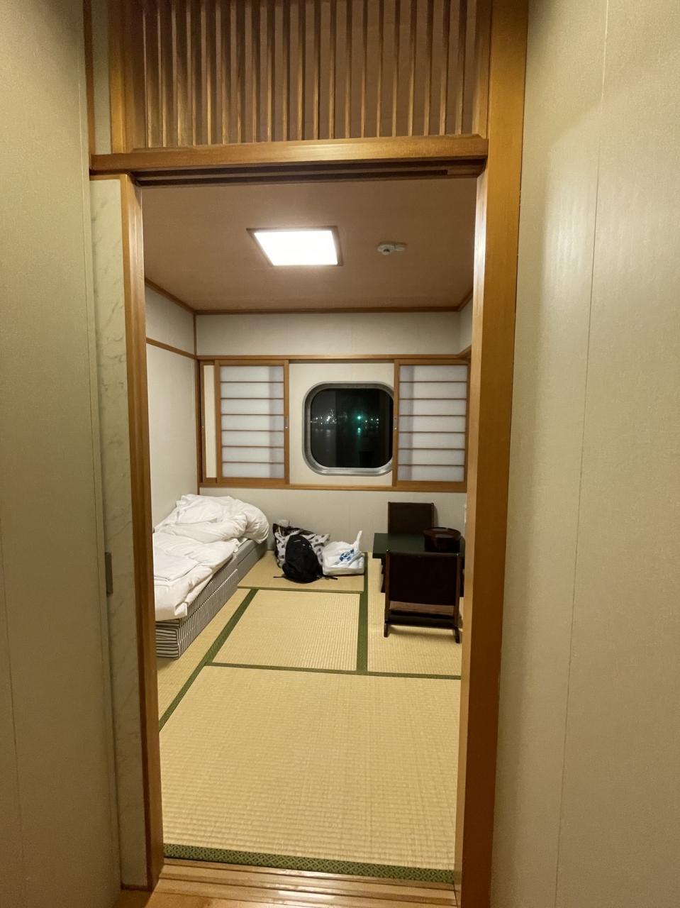 リーズナブルな個室ですが 四畳半にトイレ、洗面所、冷蔵庫もあるので快適に過ごせます。新日本海フェリー 乗り物