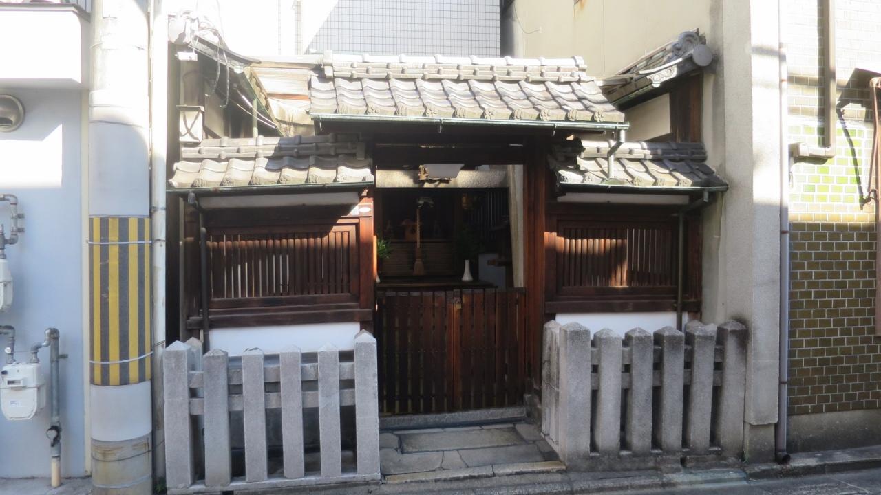 この辺りはかつて「革堂」(行願寺)があった所で、秀吉の都市計画で移転した後、広大な寺域の使い道を地域の生活者が利便性を考えた末細い通りが生まれ、小川通と油小路通の間を走る貫通した通りになったもので、袋小路の路地ではない *「行願寺」(ぎょうがんじ)は、寺町荒神口からさらに寺町通の下御霊神社近くに移転している -