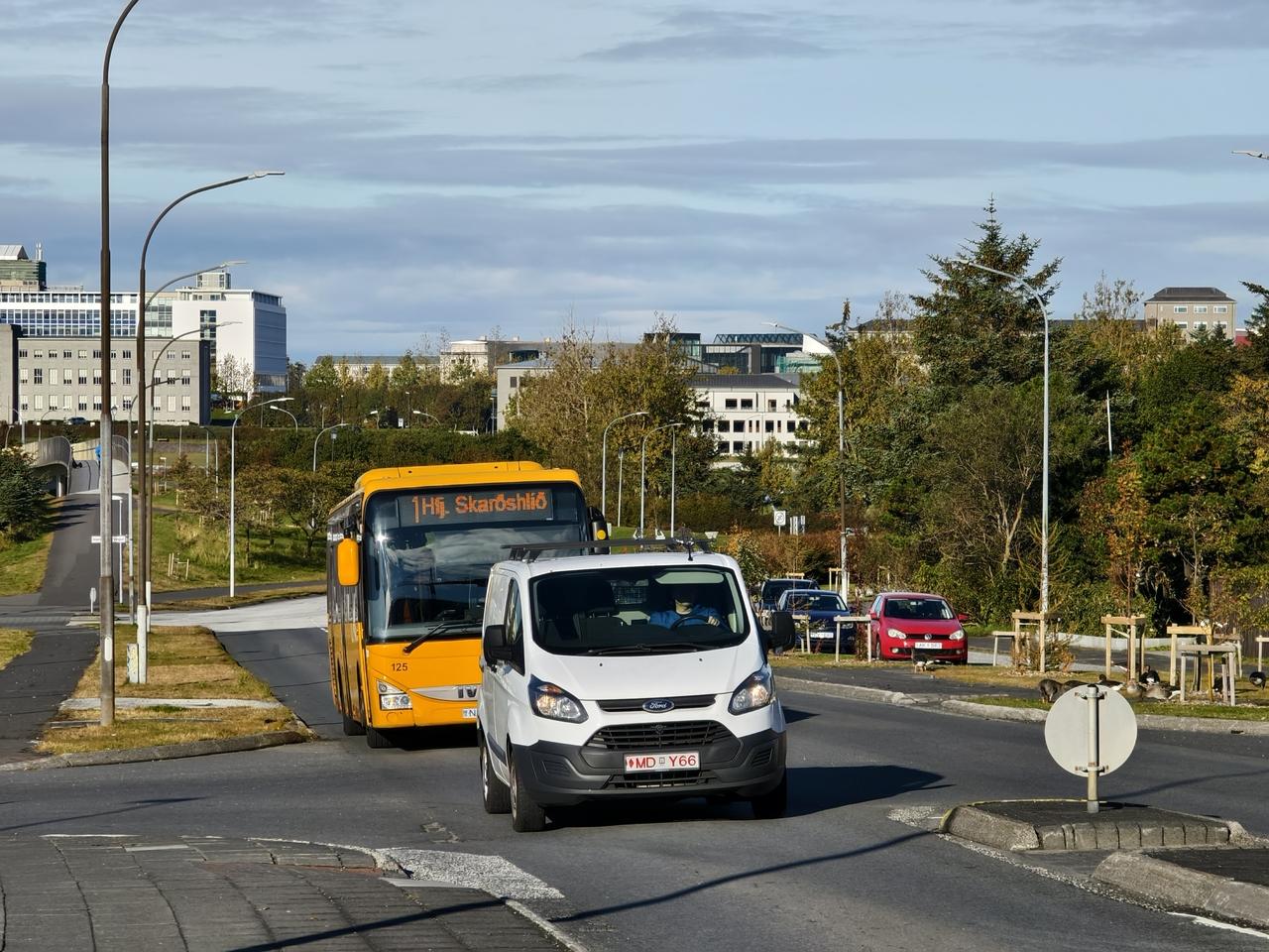 市内バスターミナル駅から1番バスでハフナルフィヨルズゥル(Hafnarfjörður)を目指します。その後、19番バスに乗り換え、Asland IIIというバス停で降りる。すると、、 -