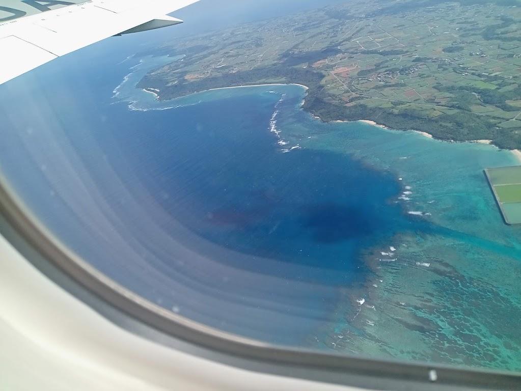 エメラルドグリーンの美しい海!濃い色の場所が珊瑚礁です。