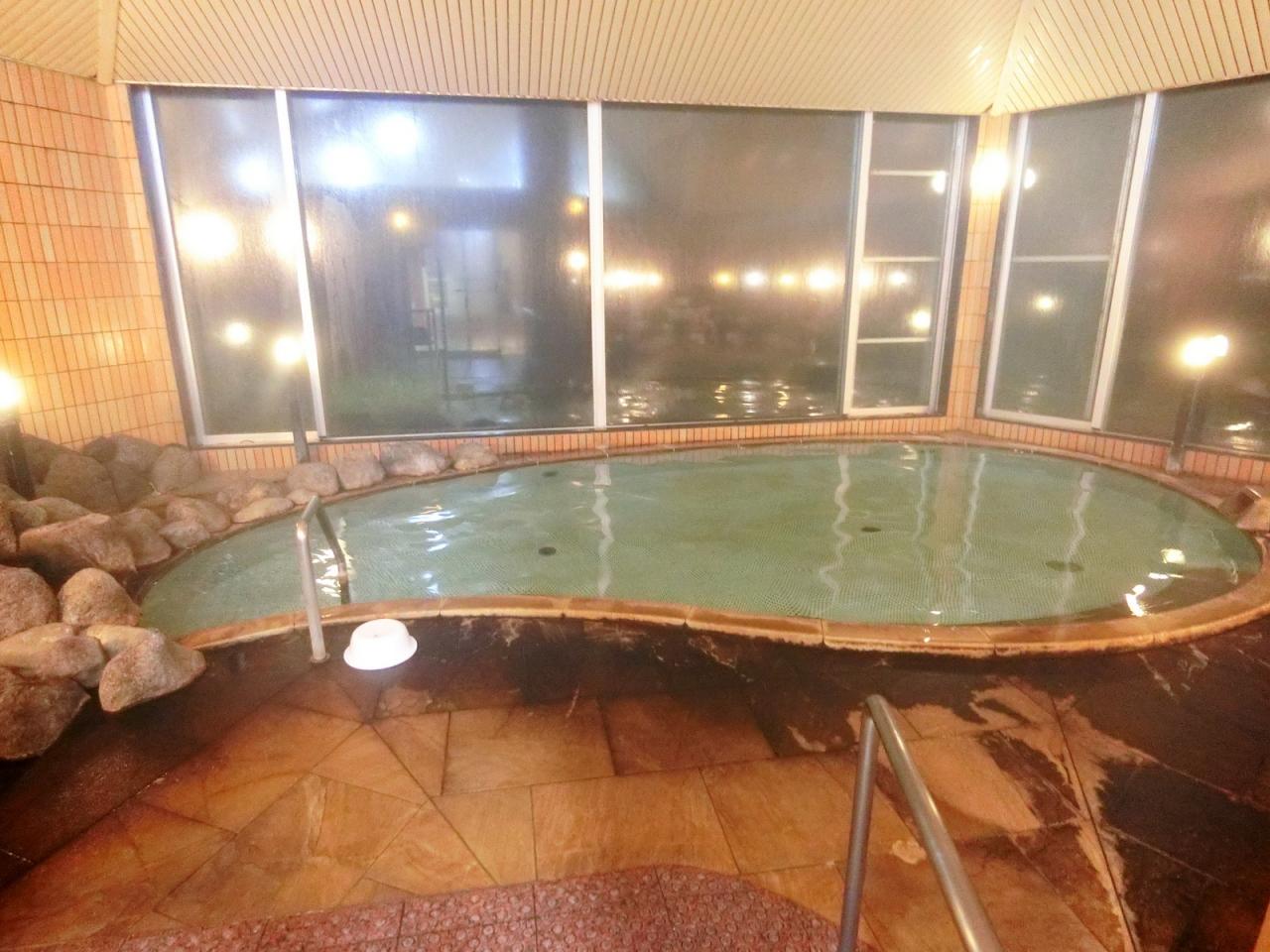 モール温泉は初めて利用したのですが、やや黒ずんだお湯でアルカリ泉ということもあり、肌がぬるぬるします。 -