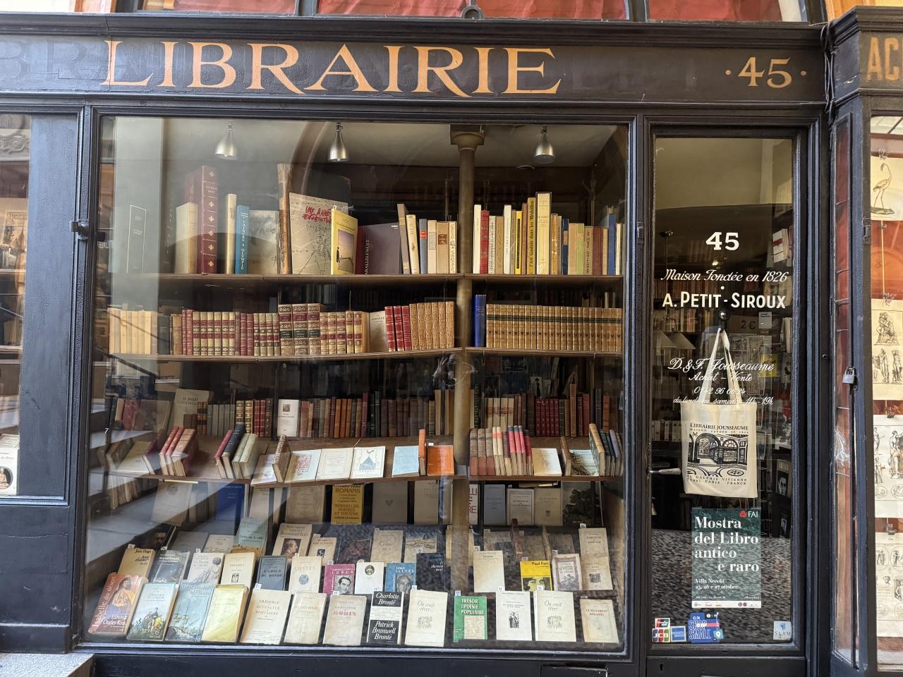 雨がふってきて リヴォリ通りのアーケードのお土産物屋さんをみながら