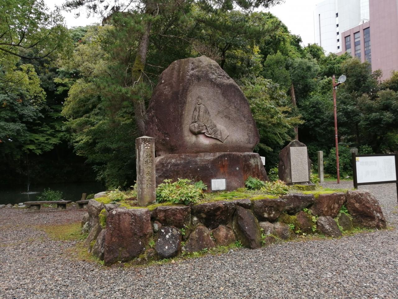 足元の丸い石は、明治の神門の建築にともない兼六園から移されたもので、美しい円を描く石のあるこの場所はパワースポット