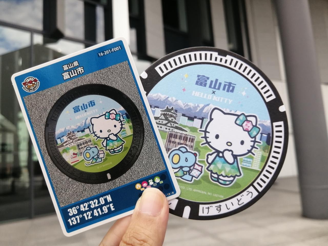 富山市Fのキティちゃんのマンホールカードです。こちらのマンホールカードは2025年2月に現在ある在庫限りで配布終了することが案内されていて残念です。 -