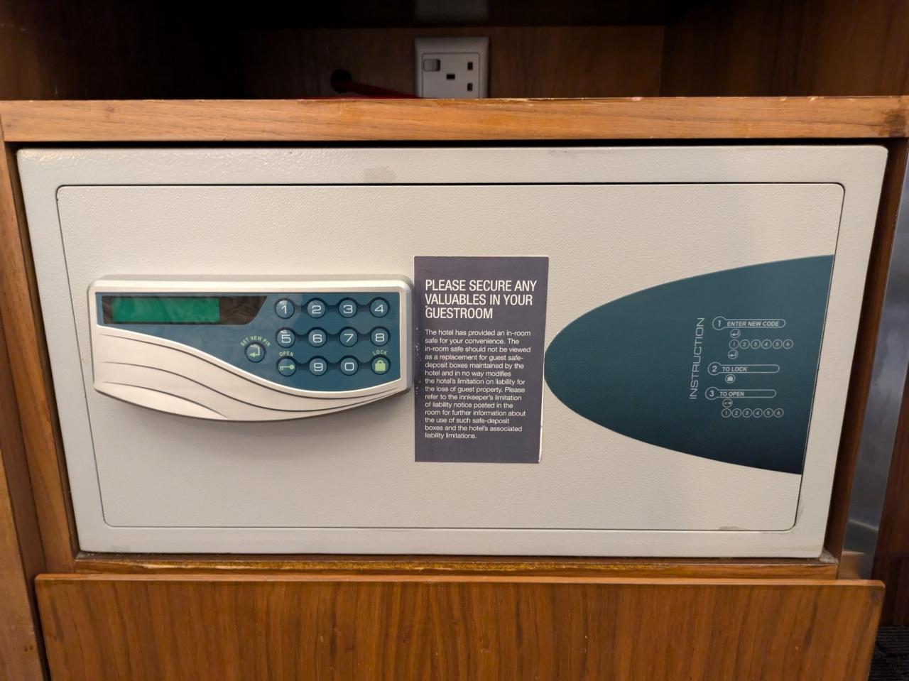 ワーキングデスクに設置されたセーフティボックスは6桁の暗証番号を登録タイプです。