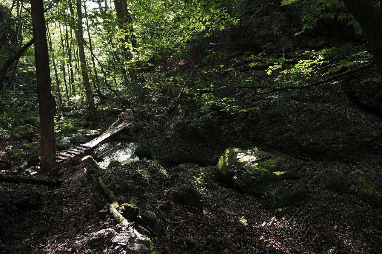 登りでは写真を撮る気にもならなかったけど、けっこう立派な滝もあった。
