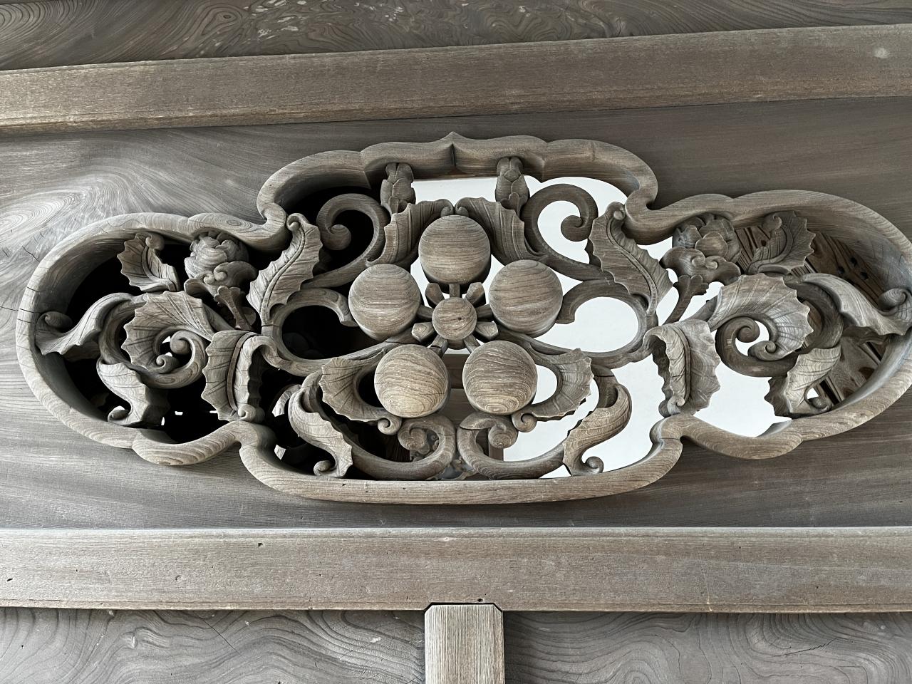 楼門を子細に見ると梅鉢紋が隠れていた。
