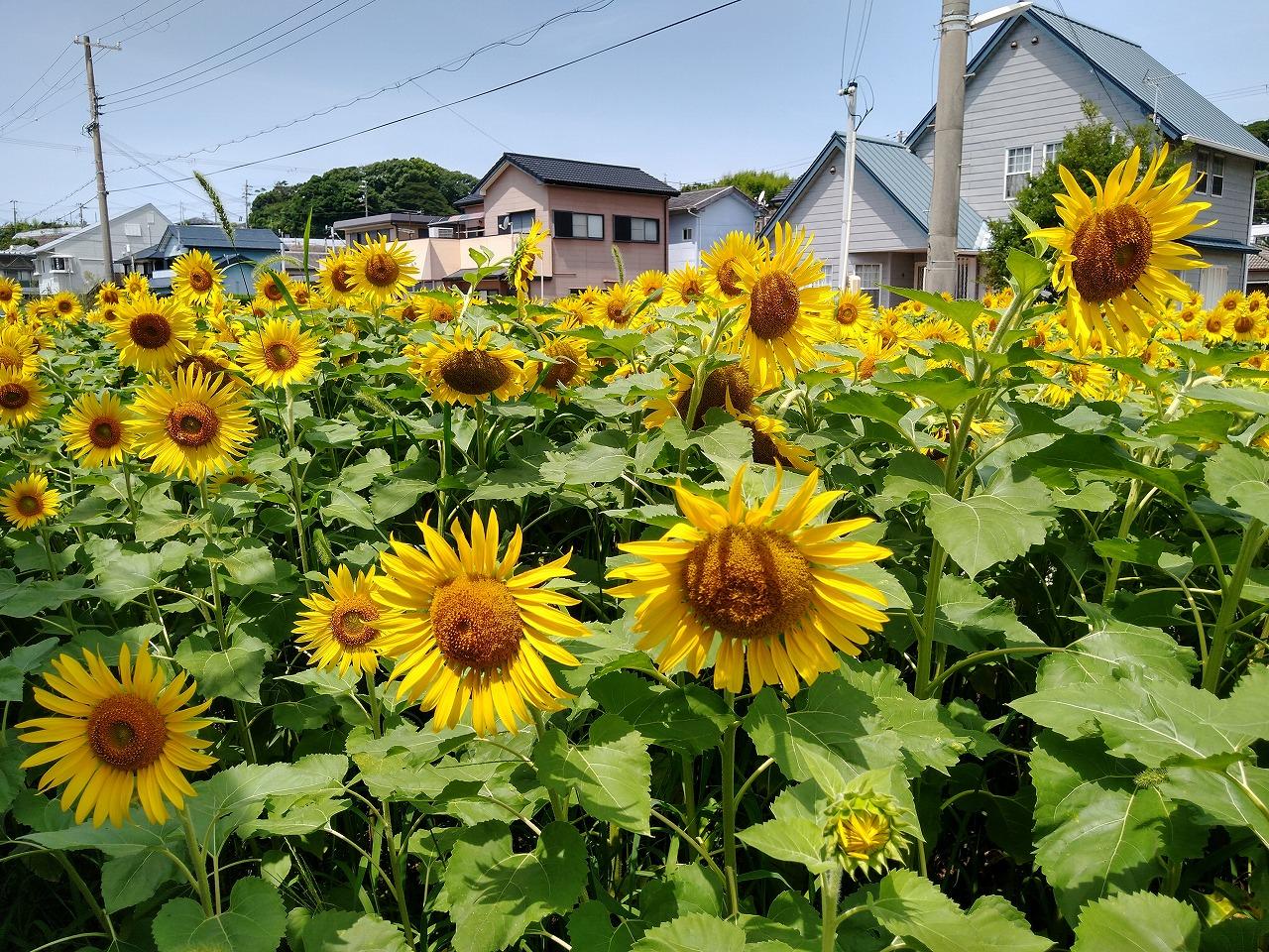 かえるの港の一角に ヒマワリが満開との事を