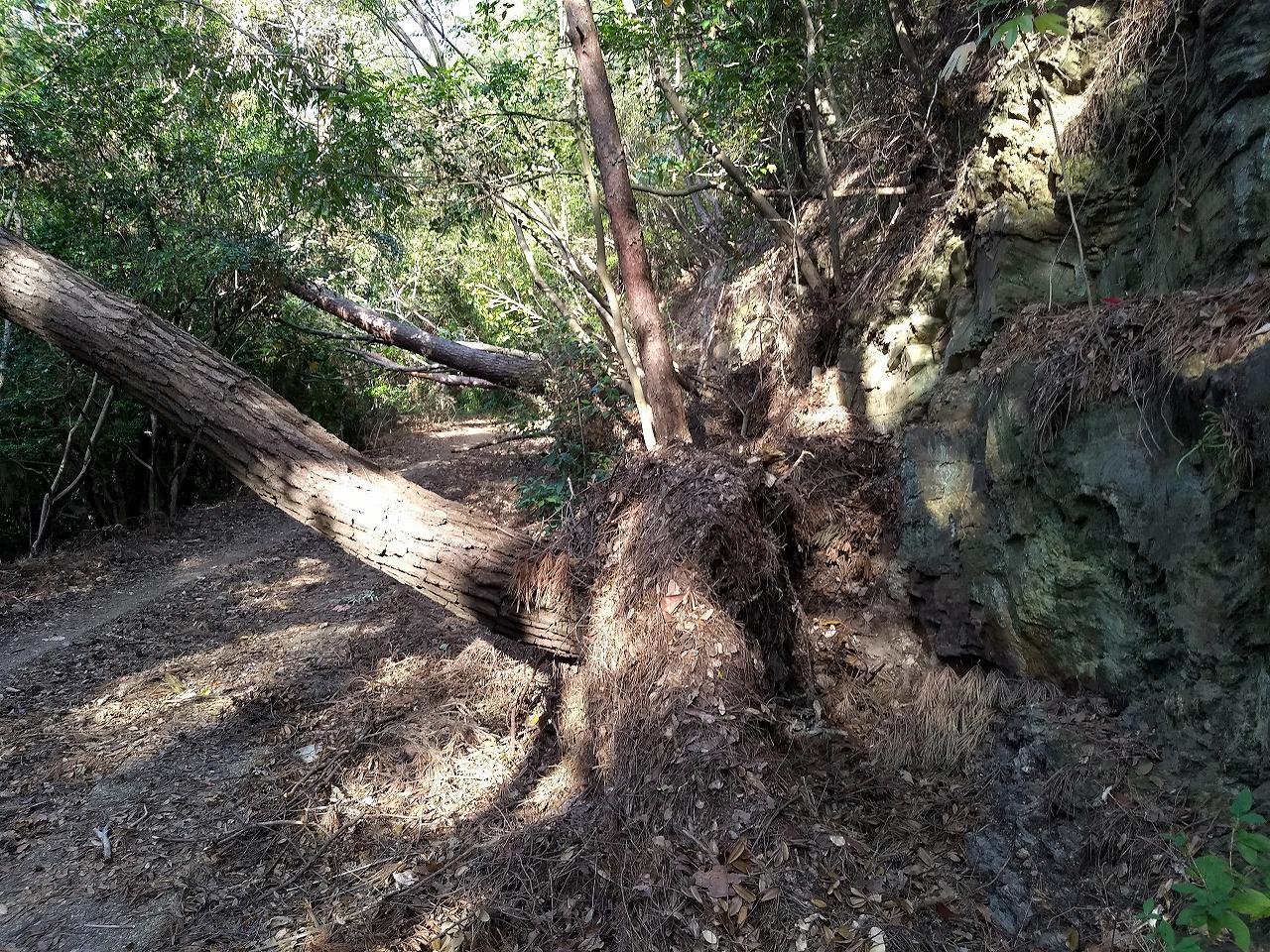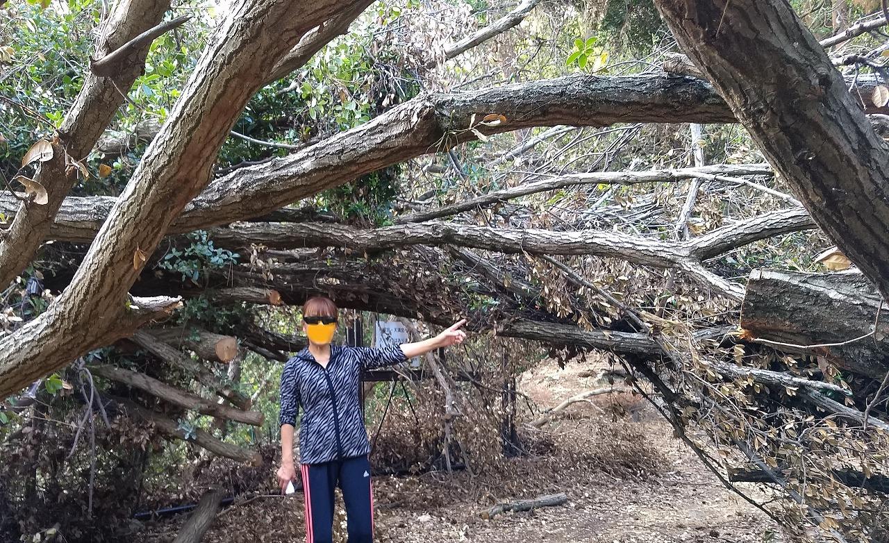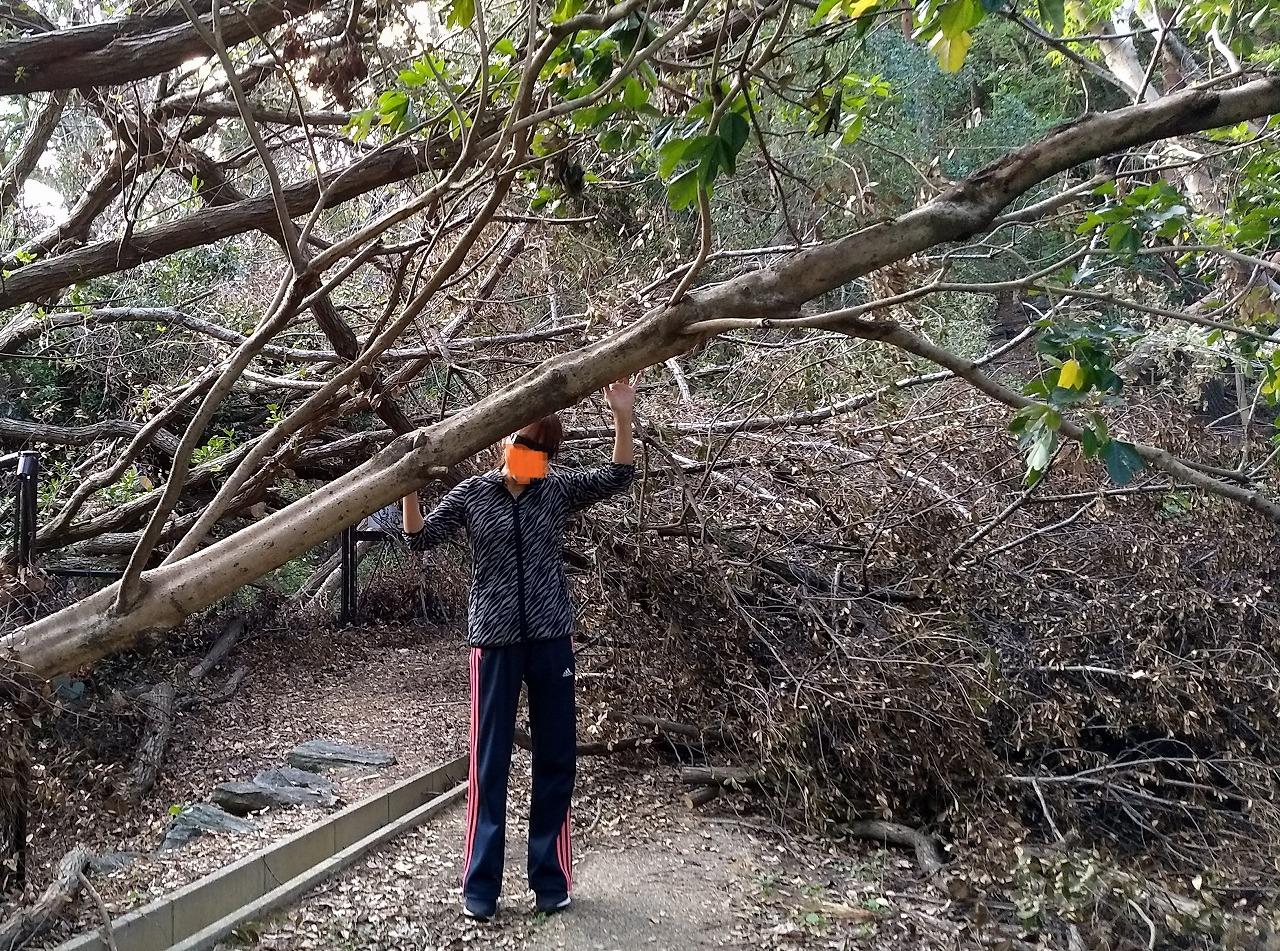 台風24号の影響で 多くの倒木が 遊歩道を塞ぎました -