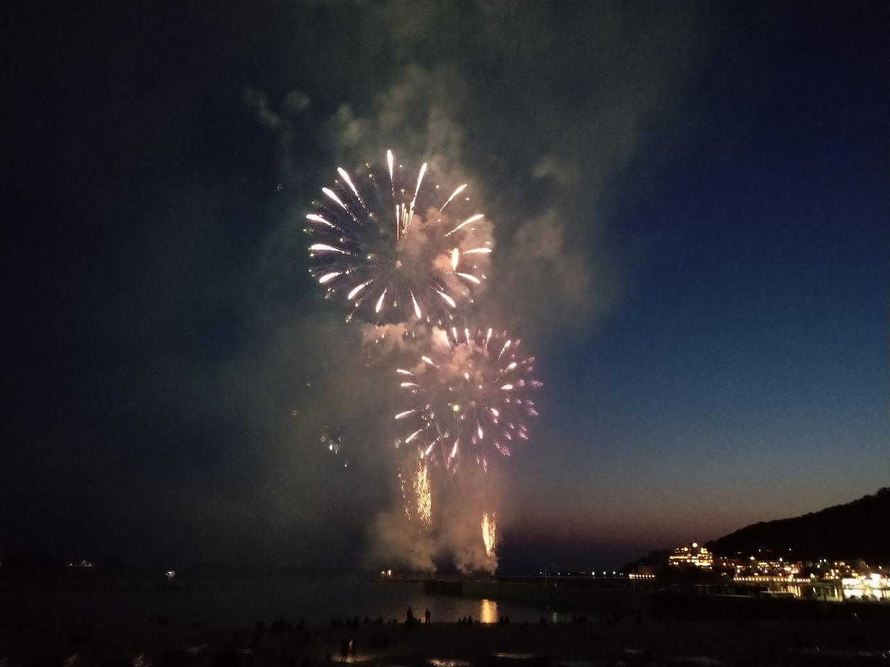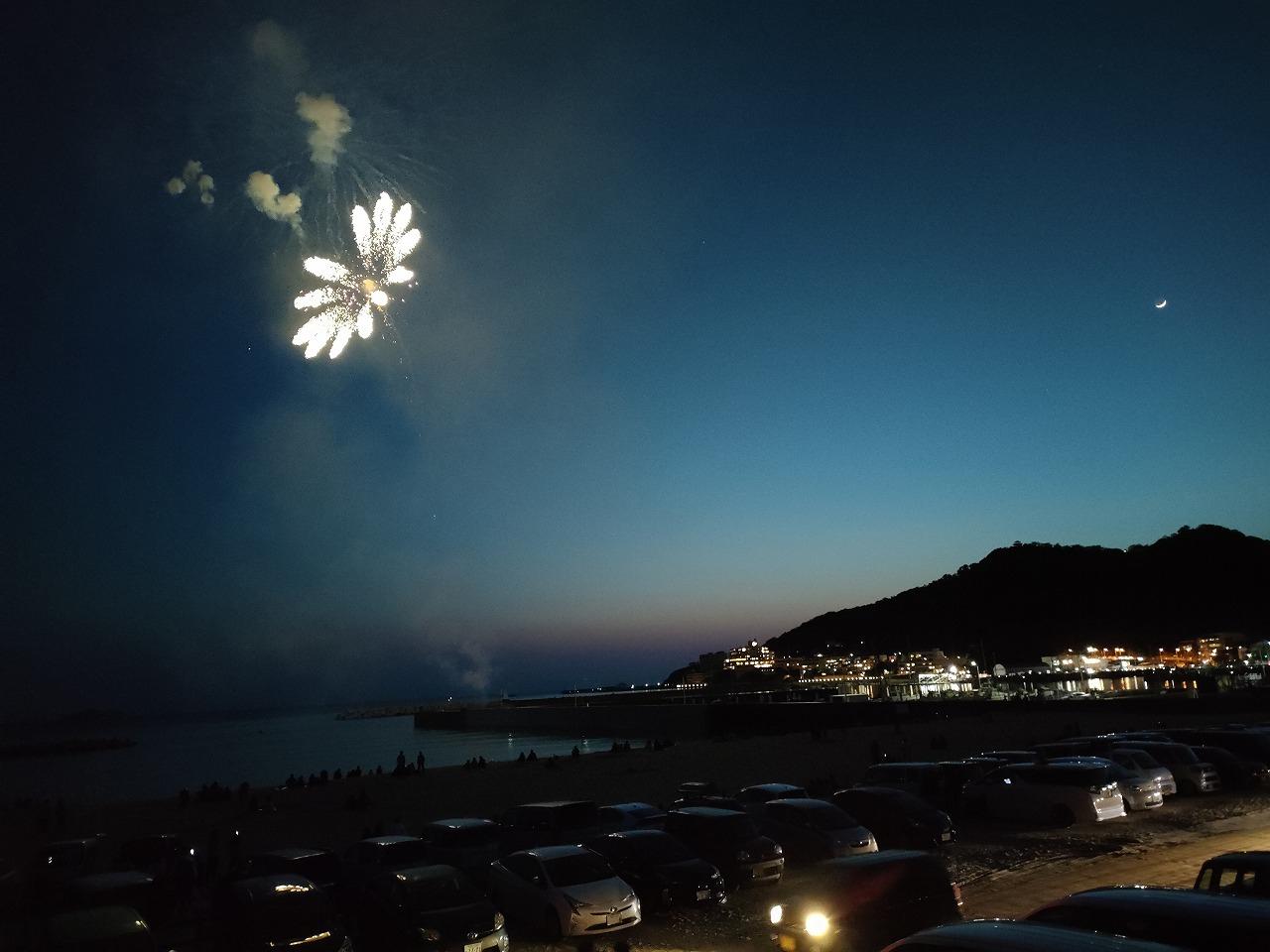 和歌浦漁港で 花火があり