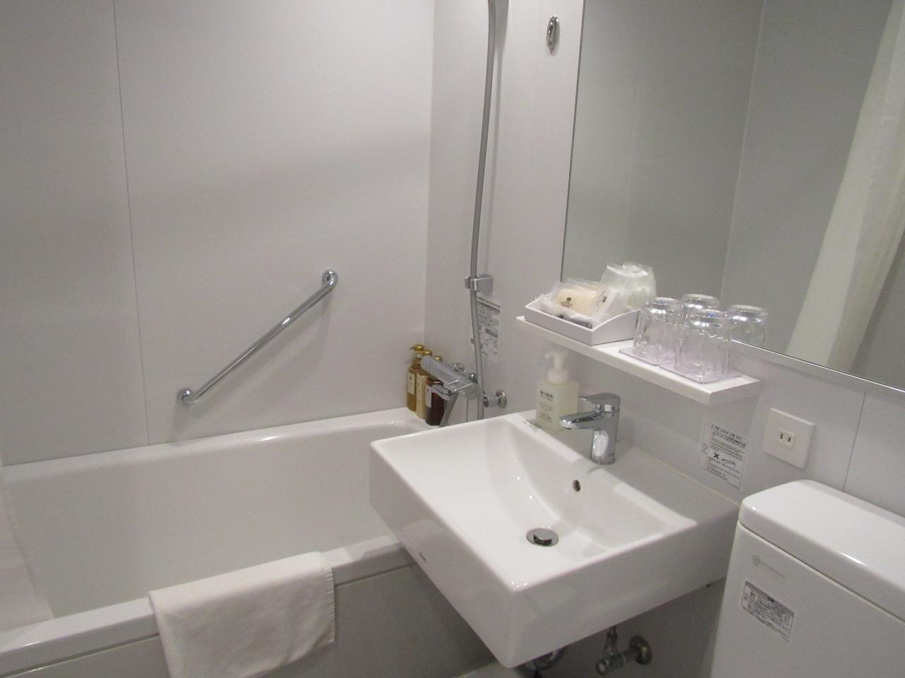 まだ新しいので真っ白で清潔!バスタブとシャワーは大浴場に行くの使わず。 -