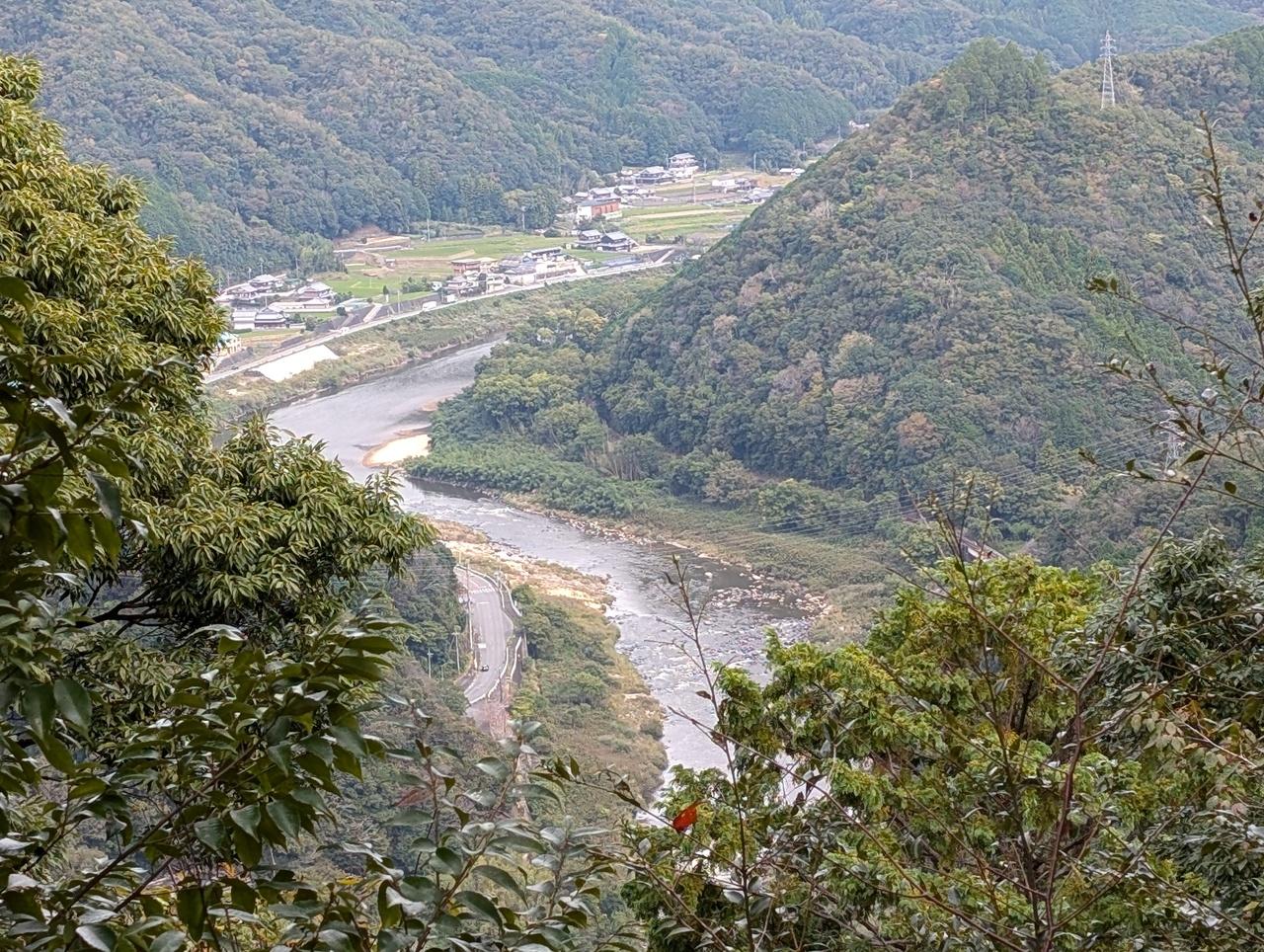 木津川の流れが大きく蛇行するのが見える。良弁僧正が龍穴で会ったという龍神とはこの河のうねりに違いない。