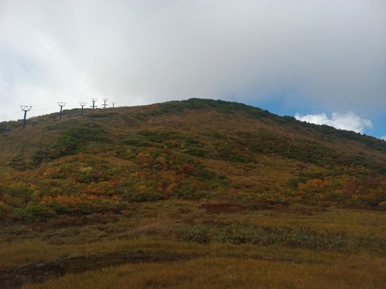 リフトの方に歩きます。丘の紅葉が山麓や兎平よりも一層色づいて艶やかです!