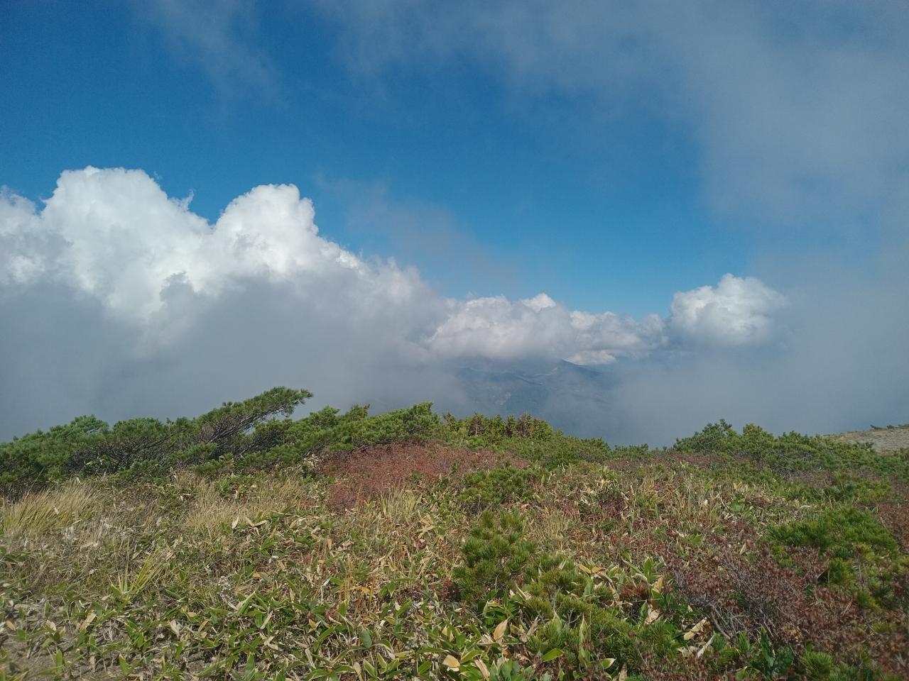 手前の紅葉の丘、そして白馬岳の右側はだいぶ雲が取れているこの光景、まさに夢の世界のような美しさ!何の言葉も出ません!