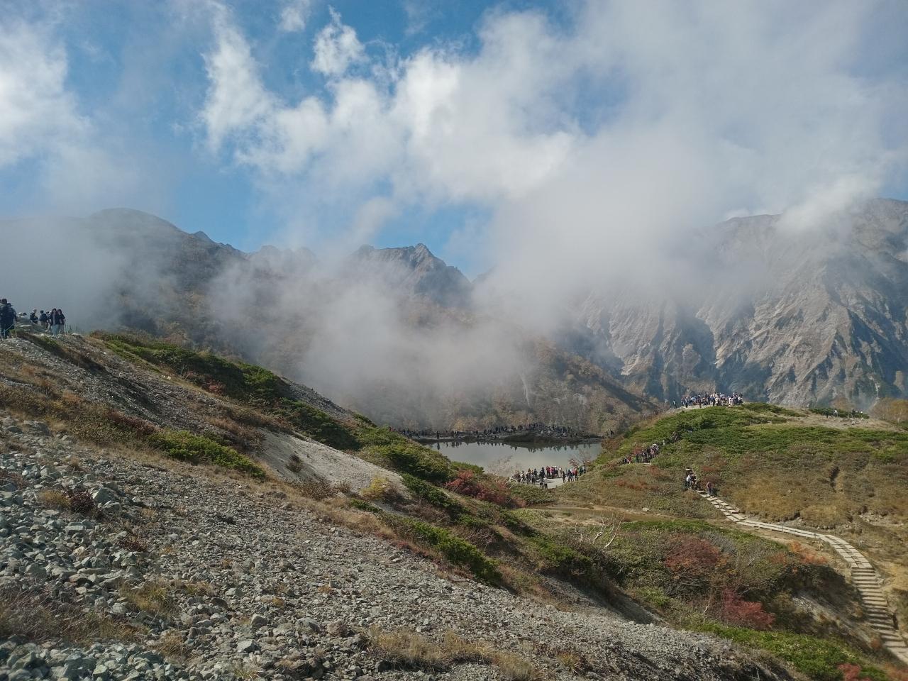 あっという間に雲が現れます。そして八方池が見えてきました!池の周囲の丘、崖、色づきも含めて何という美し過ぎる絶景でしょうか!