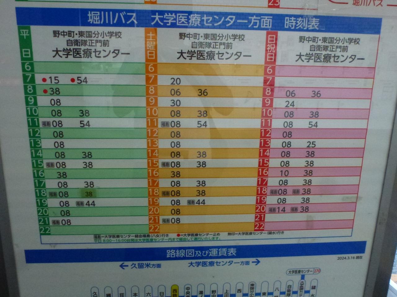 「湯の坂久留米温泉」最寄りの「湯ノ坂」バス停に行くには、この大学医療センター行き方面のバスに乗ります。