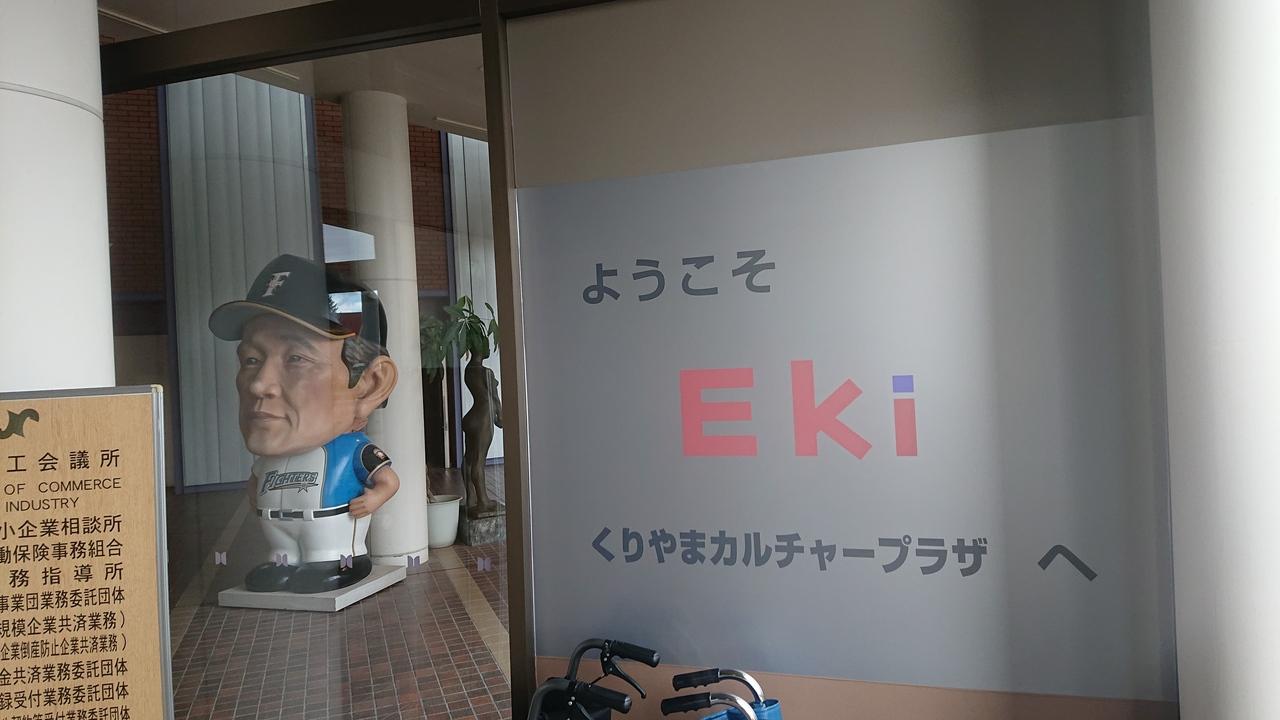 カルチャープラザ内に入ると、元ファイターズ監督、栗山氏の像が設置されていました。