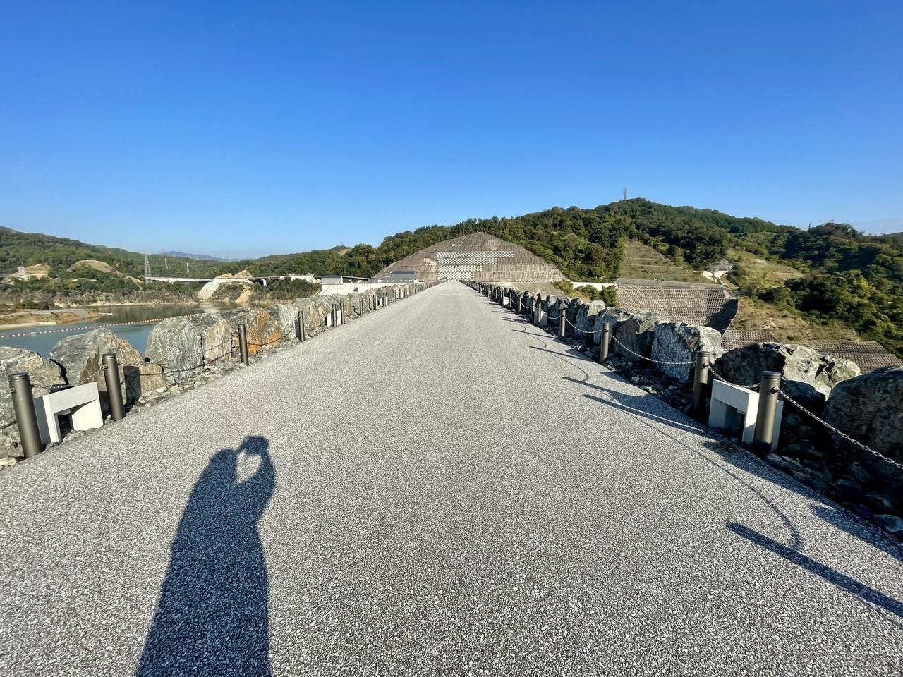 ダムのてっぺん道だぁ