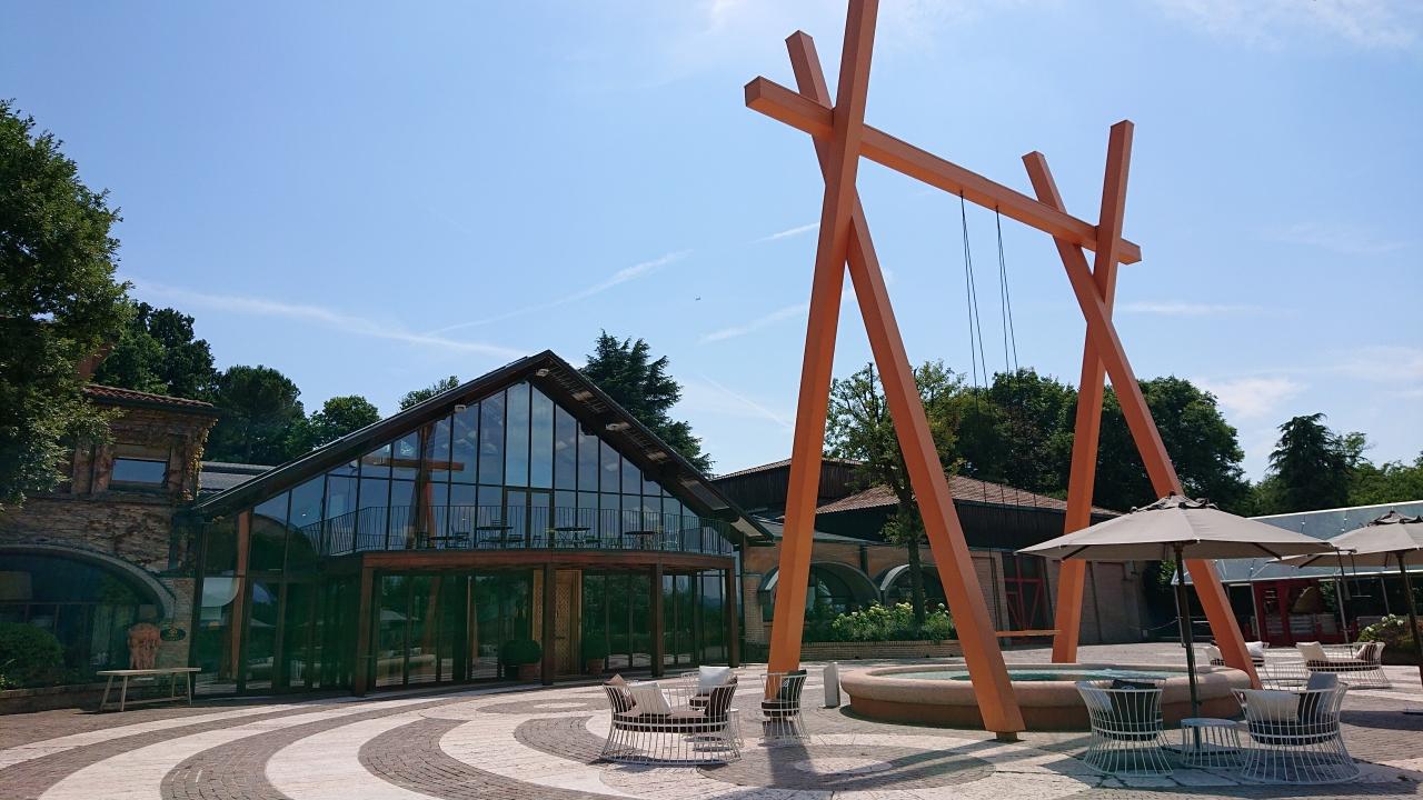 アートとフランチャコルタの融合。ウルフのオブジェ。中を見学するとその意味がよく分かる