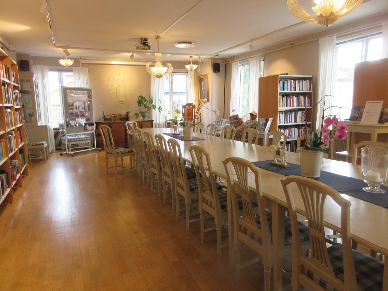 Trosa stadsbibliotekと地図で書かれている場所です。タウンホールのようです。図書館があり、たくさんの本がありました。英語の本を探すとありました。 -