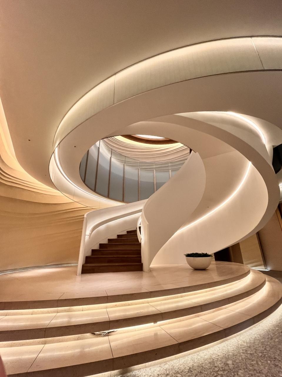 幅も広く明るい廊下。波模様のカーペットが素敵✨