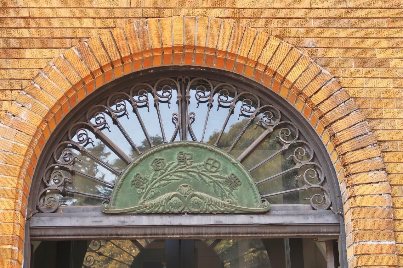 1階の入口上部には、アール・ヌーヴォー調の装飾が施され、黒田記念館の文字も右から左へと書かれています。