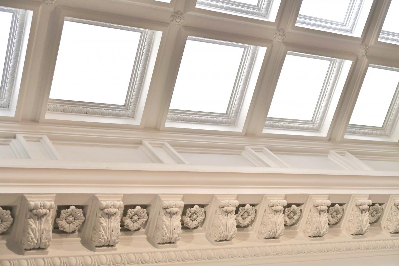 展示室には窓がなく、代わりに天井が天窓になっていて、部屋全体が均質な明るさになるよう設計されています。