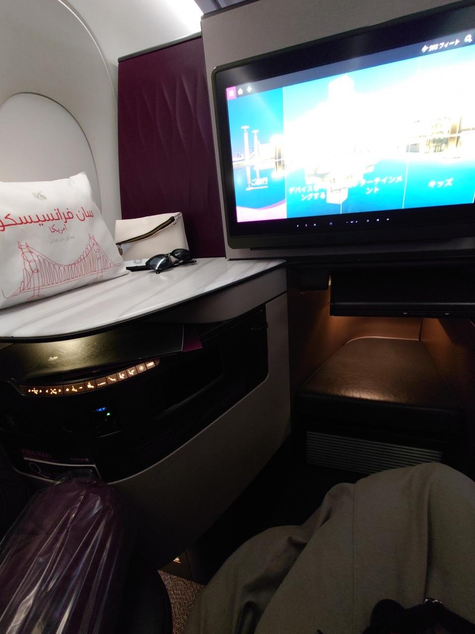 カタール航空最後の、そして、この旅行での最長のフライトです。ドーハを起点に行ったり来たり、フライトとラウンジを思いっきり楽しむことができました。