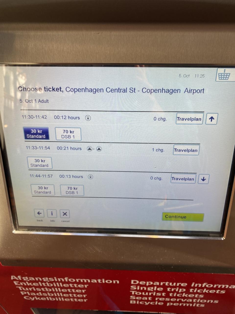 自前の情報では、36クローネと聞いていましたが、36DKKの購入画面が見つからず。来るときの現地の人に30クローネのスタンダードチケットでいいと言われたのでそのチケットを買ってください。 -