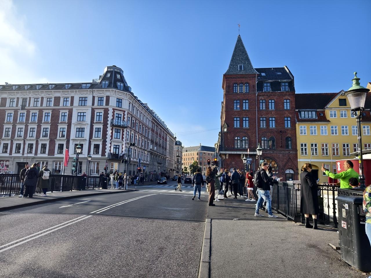 観光客が船から美しさの町・ニューハウンを遊覧しております。