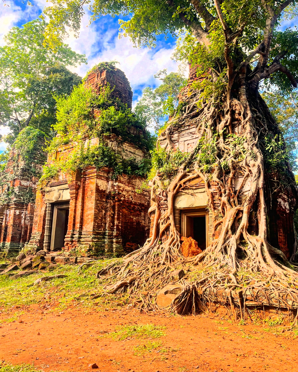 • 特徴: 「プラム」は「5」を意味し、5つの塔が並ぶ神殿遺跡です。特に赤いレンガの塔を覆う樹木の絡みついた姿が印象的で、訪れる人々を魅了します。自然と建築が一体化した独特の風景が見どころです。