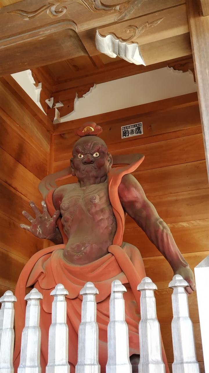 仁王門の金剛力士像、口を開いている阿形(あぎょう)。