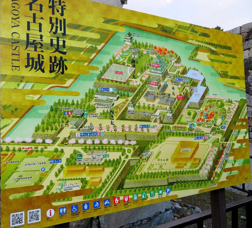 名古屋城の見取り図。私達は東門から入ったことになる。天守閣は閉鎖中なので、まずは隣の本丸御殿に入ることに。