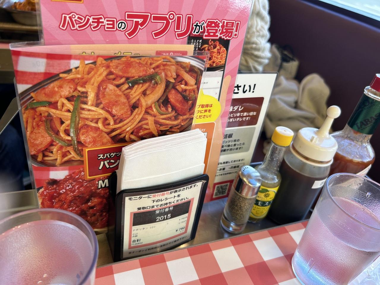 #スパゲッティのパンチョ #ナポリタン専門店 お腹空いてないと無理 太麺にオイリーなソース トッピングは多種 カレーやラーメンもあるけど ほとんど皆様 ナポリタンを注文 アプリ登録で 烏龍茶もらえた ランチどき 並んでいた