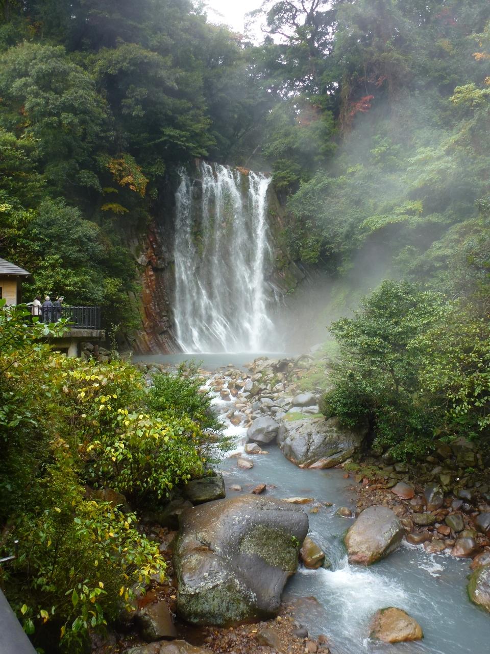 温泉も混じっているようで、その為滝つぼの水が白濁しています。