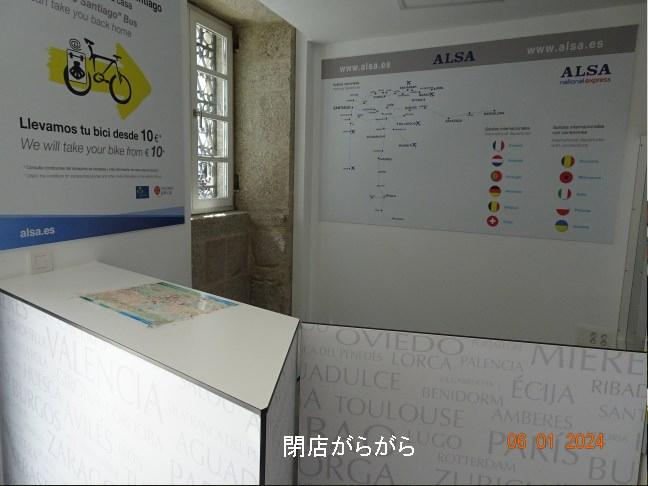 さて次の使命はアルサの出張所でマドリッドへ戻るためのバスチケットをゲットすることです。んが、巡礼事務所にあったアルサのカウンターには誰もいないし機材も消えてます。どうやらここの出張所は撤退したようです。別のバス会社モンブスがあるので尋ねたところ、アルサは新しく出来たバスセンターに行かなくてはならないようです。