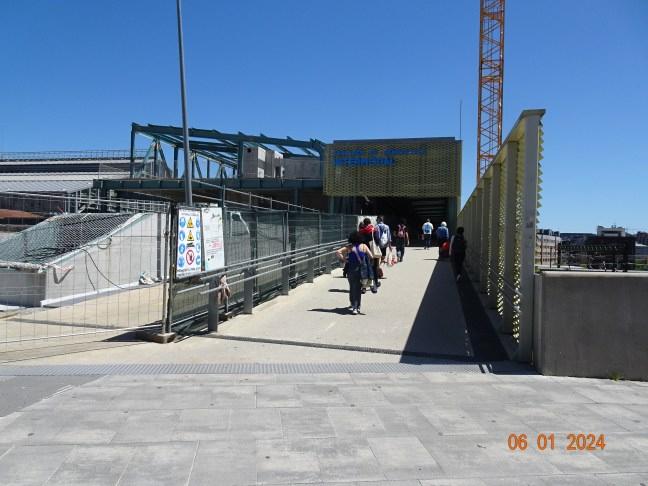 左の白い屋根がサンチャゴ駅で大きな跨線橋に行くための人が右側を歩いて行くのが分かります。
