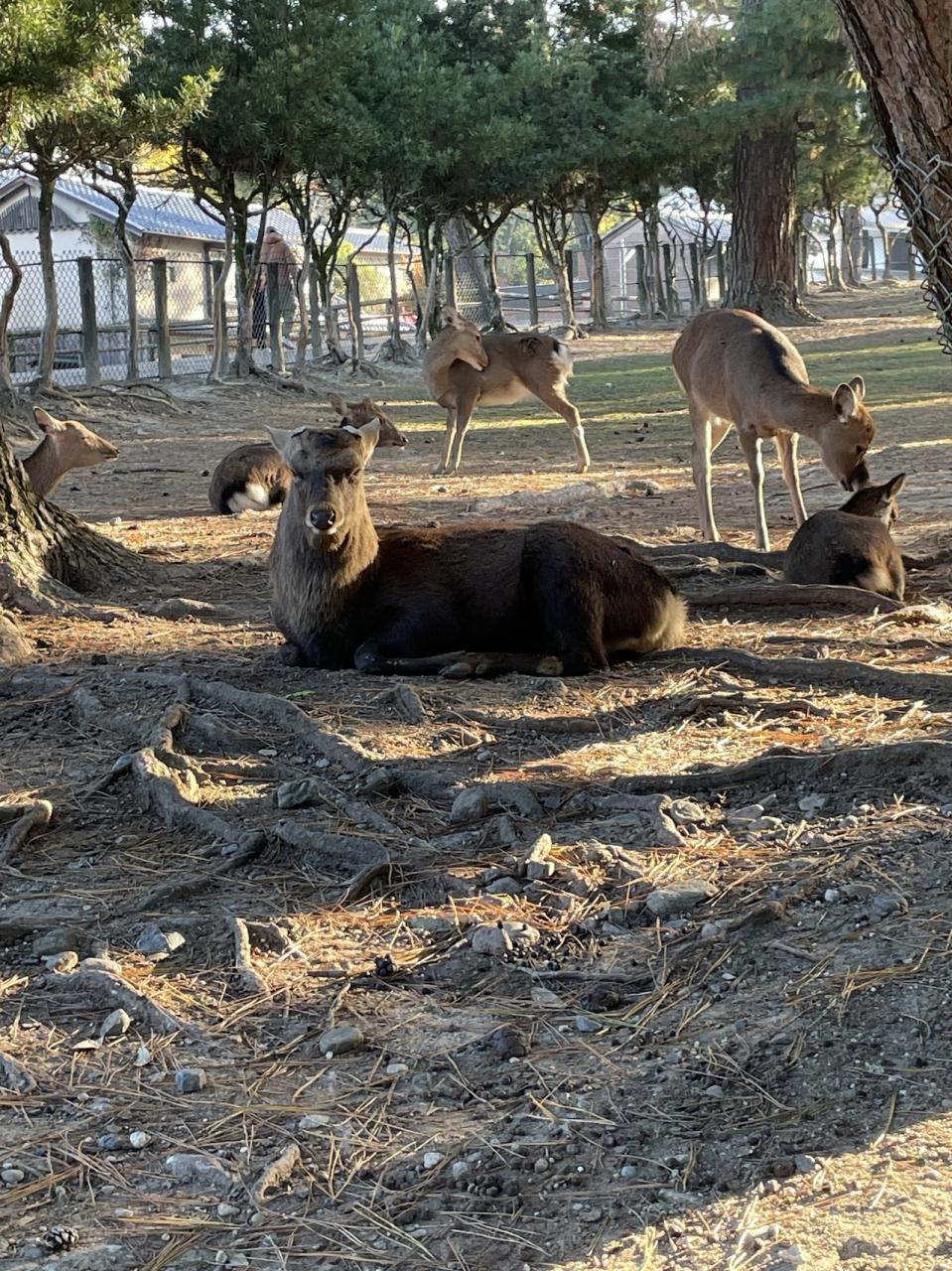 8時20分 奈良国立博物館近くにて。まだ鹿たちはのんびり過ごしてます