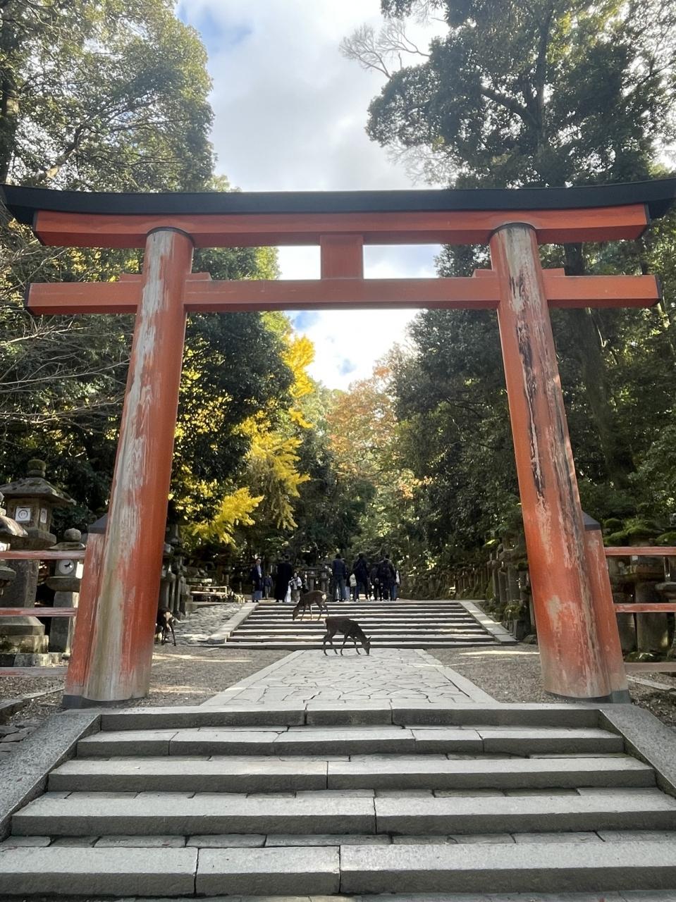 鹿にお出迎えされて、春日大社に到着