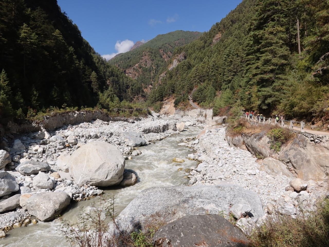 ドゥード・コシ(Dudh Koshi)と呼ばれる川に沿って遡って行く。