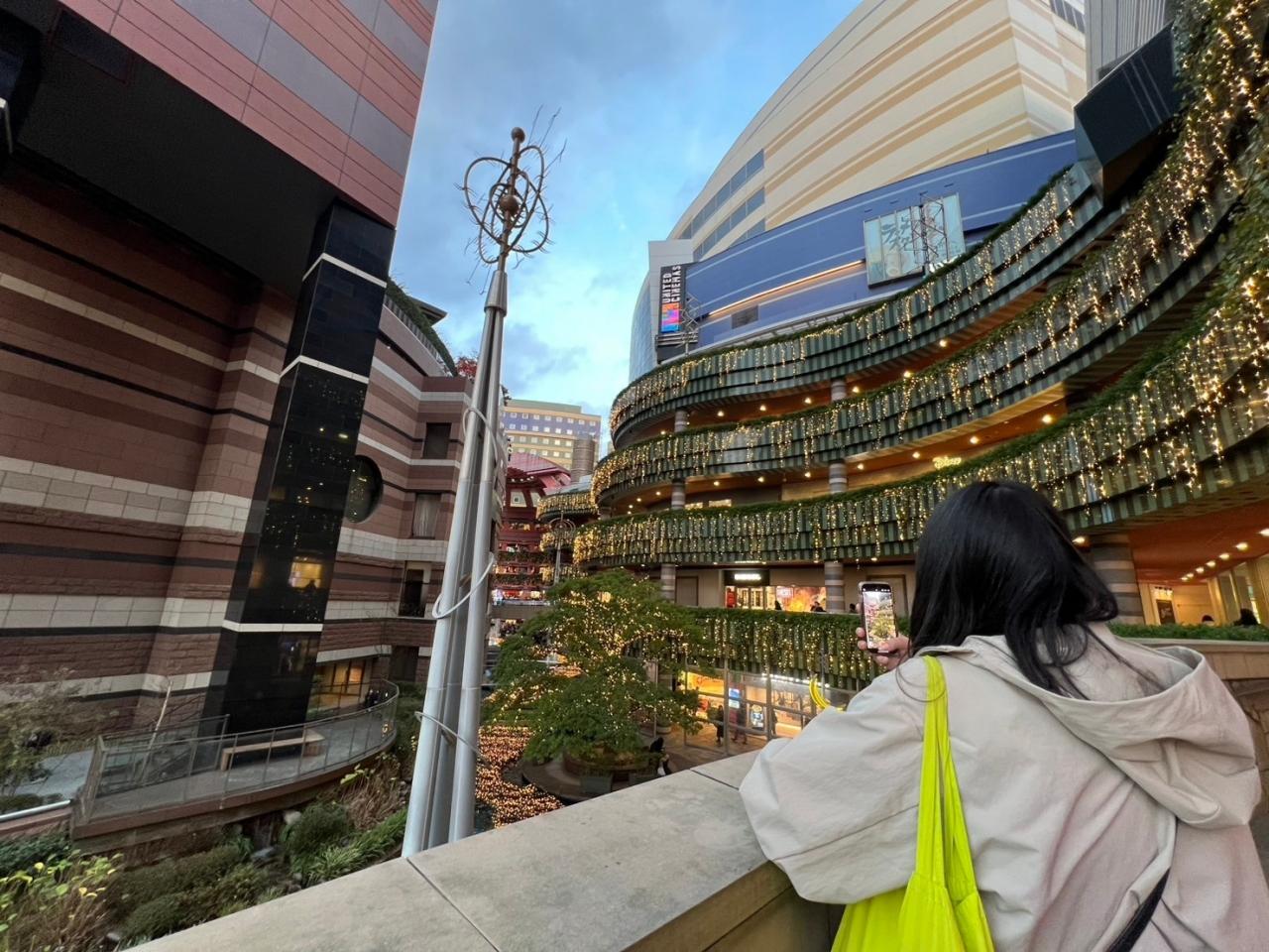 移動中、キャナルシティと櫛田神社に寄りました。美味しく飲んで食べて楽しく過ごして最後はライトアップしている大濠公園で食事会を終了しました。